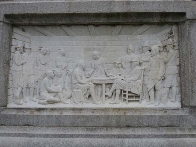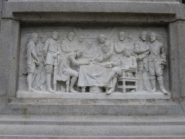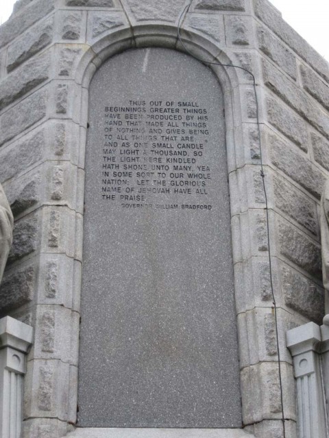 One of the numerous engravings on the monument contains a quote from Governor William Bradford’s Of Plymouth Plantation, and depicts well why these people have been called the “parents of our republic.”