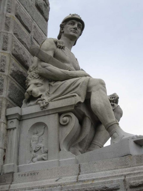 It is important that we understand the great liberty that God desires us to have. Lack of knowledge of the value and source of our liberty has caused many people today, including many Christians, to give up their liberty for a little security and care. Like Esau, we have traded our birthright for a bowl of pottage. The freedom our forefathers gave us can only be preserved if we are willing to defend it at all costs. The seated statue Liberty has a sword in his hand, prepared to protect the family and protect liberty. Eternal vigilance is the price of liberty; and it is necessary to overcome Tyranny (depicted in one carved relief) and preserve Peace (depicted in another).
